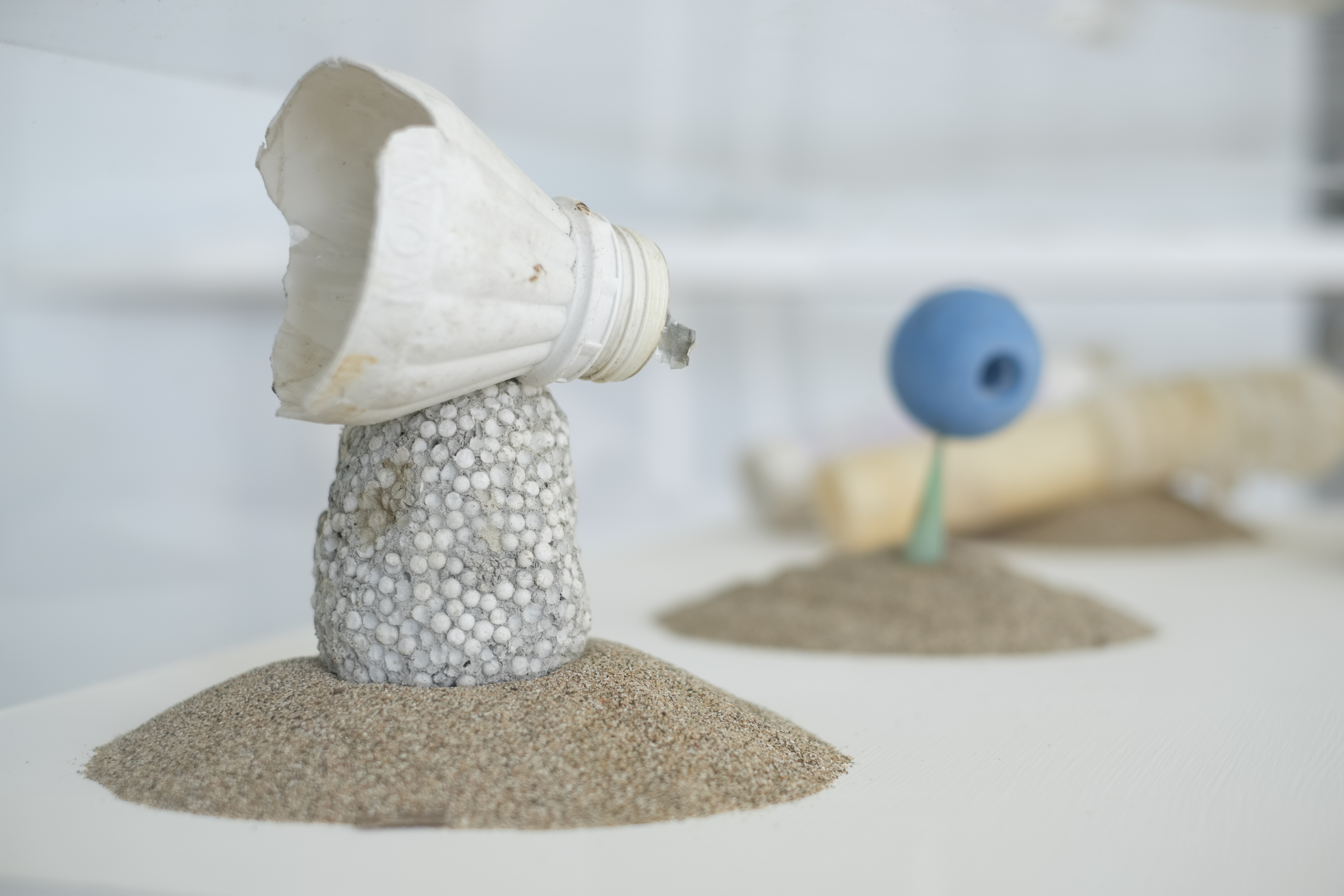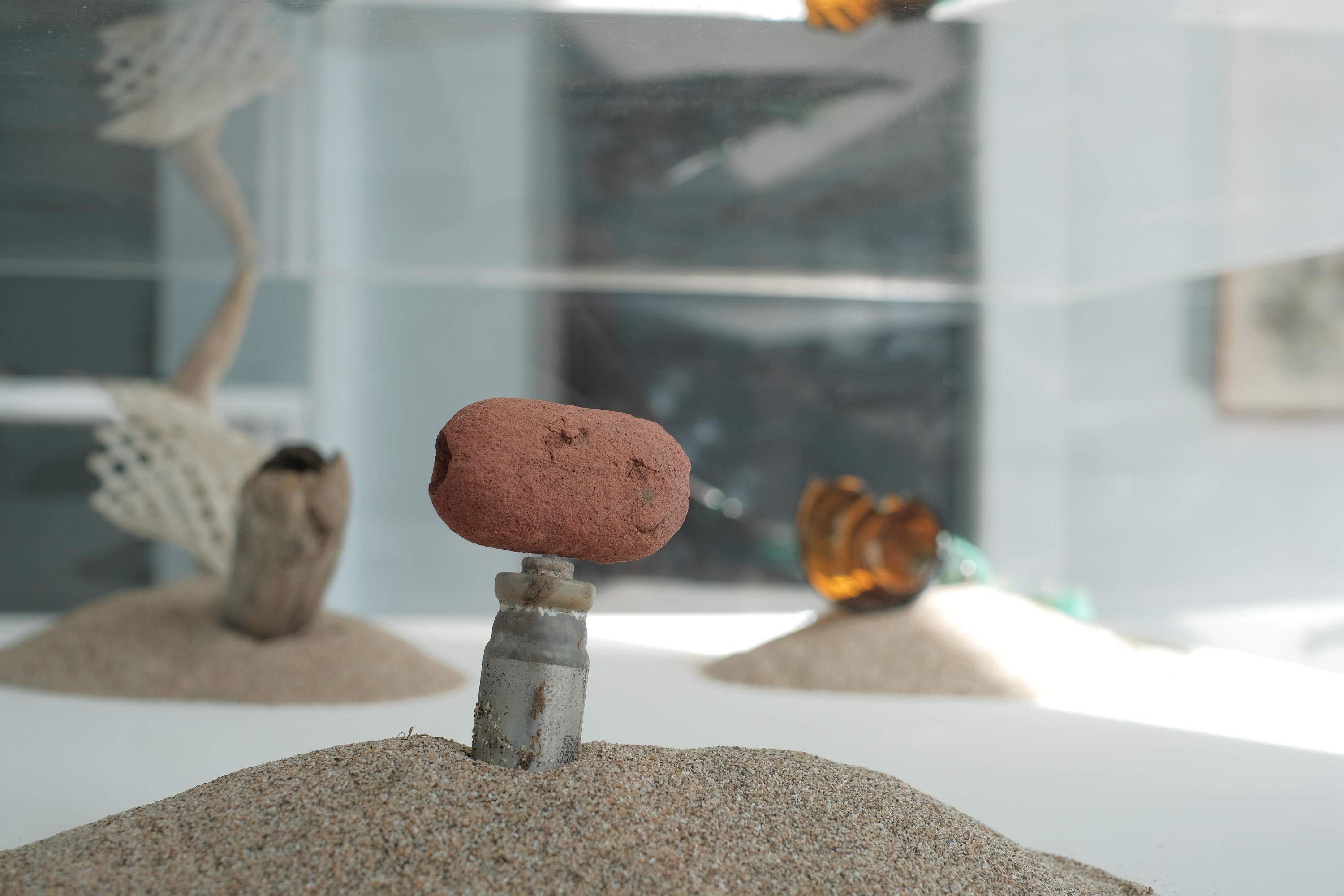 The “Crystal” project was exhibited at Cape Santiago Lighthouse in Taiwan. Using these salvaged materials, our intention was to echo the exhibition of historical relics in the lighthouse museum and have history presented by the government in the lighthouse exhibition room, contrasted with the artist’s poetic history.
