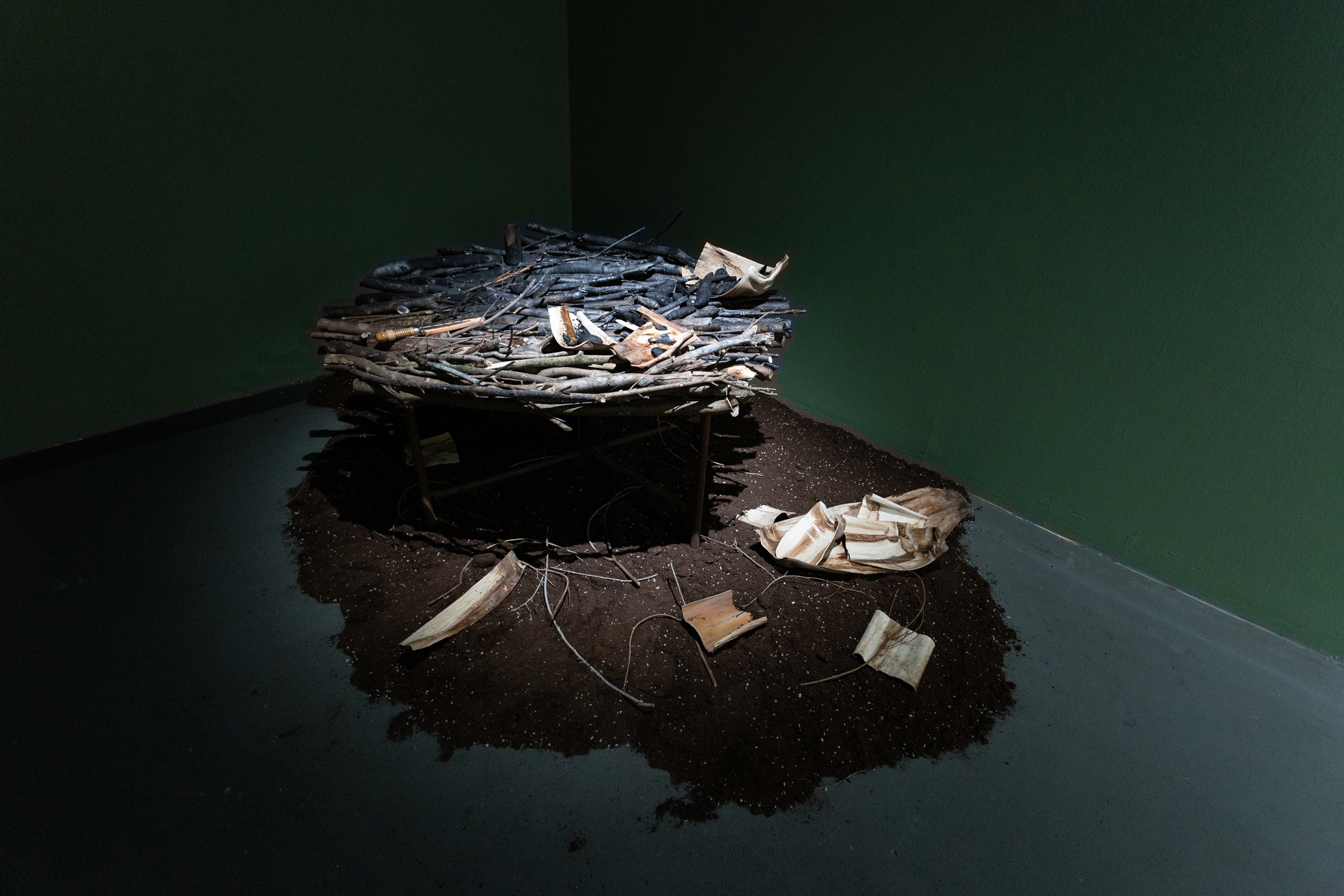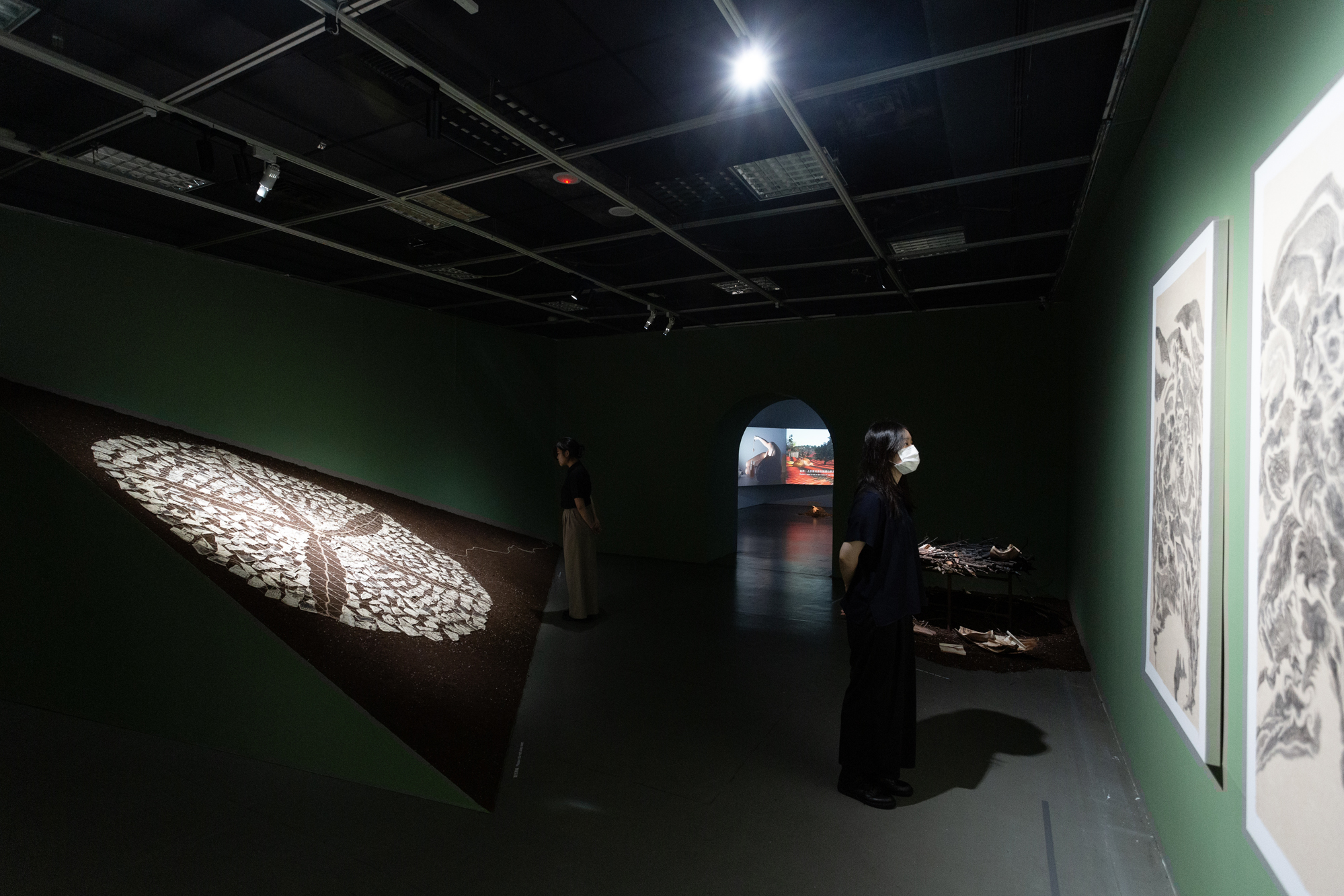 This remixing is reflected in the diversity of artwork media, the mixed, torn, and non-dichotomous state in the exhibition process, as well as the inseverable connection between human and soil—just like the word “human” of which the etymological root is “humus” (the organic component of soil, the decomposition of leaves and other plants).