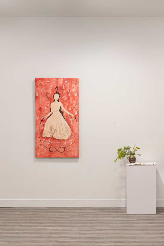 Wei uses Chinese ink painting as her major medium in portraying the female figure, reflecting on the relationship and connection between the human body and nature. Wei tries to experiment using different media (ie. curtains, silk, greige etc) to recreate space for female characters. Her creations tend to reflect and fill in the missing gaps of self-consciousness for female artists in Chinese Art History. As female bodies were often objectified in traditional Chinese Ink Painting, the artist attempted to create a whole new conscious body using this traditional medium. She tries to break the boundaries and restrictions for female characters in traditional Chinese ink painting, creating a body that belongs to the modern time.
