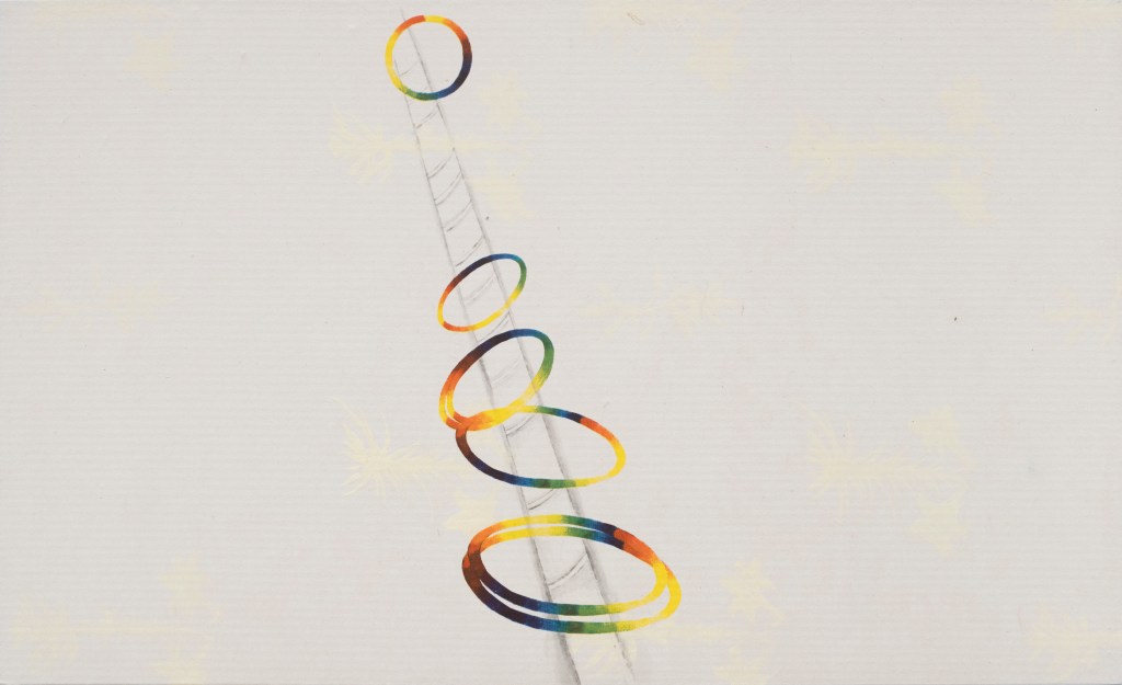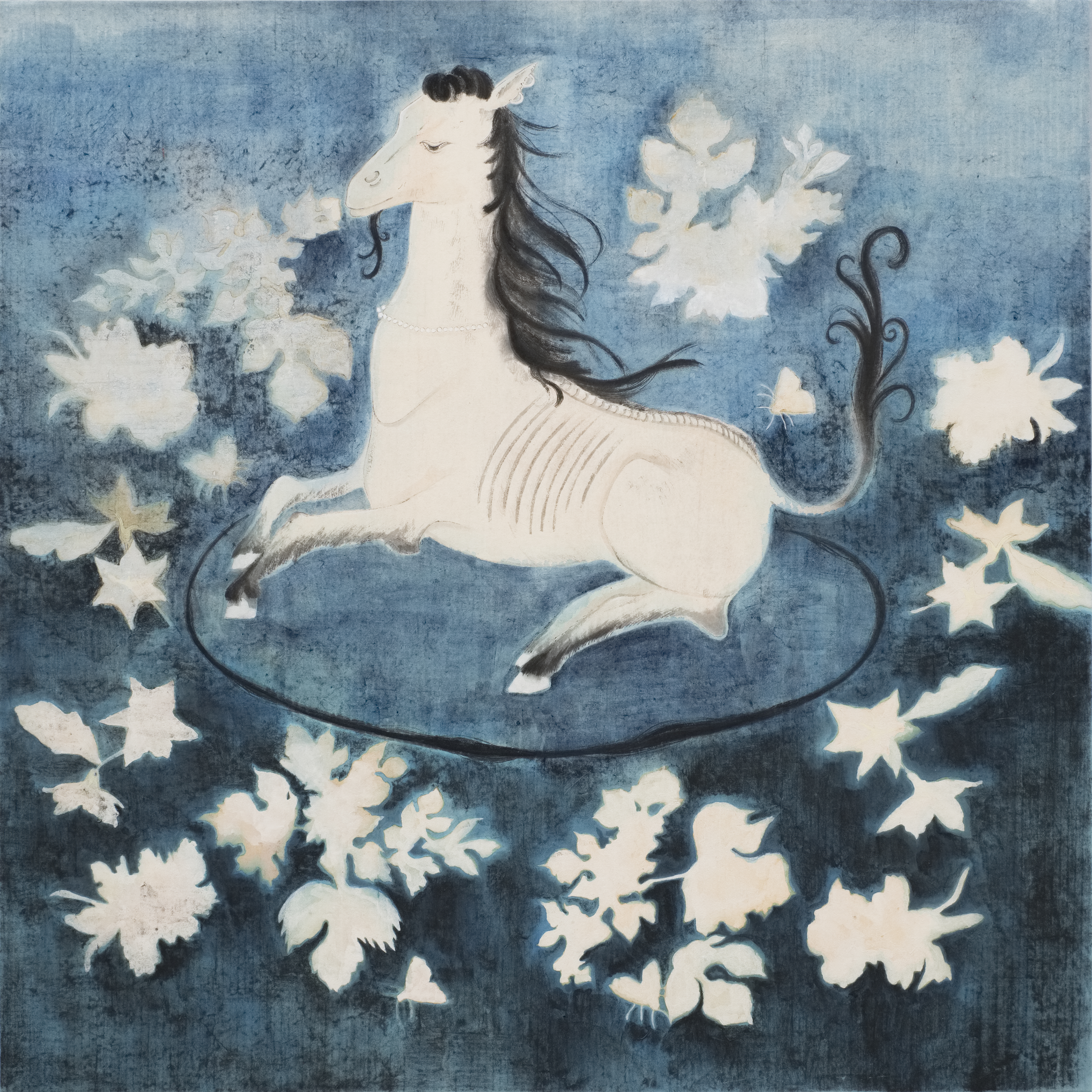 Suihi-enogu, silkscreen, mineral pigments, ink on paper | 絹印、水干、水墨紙本、礦物顏料