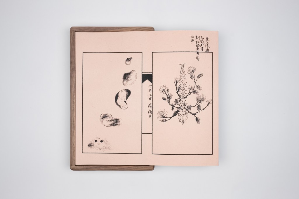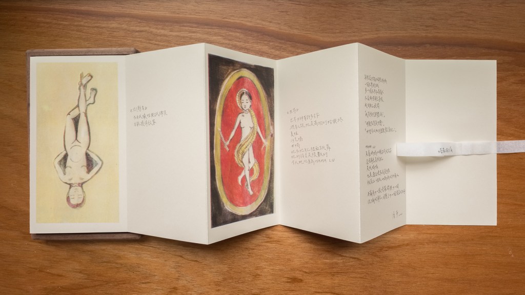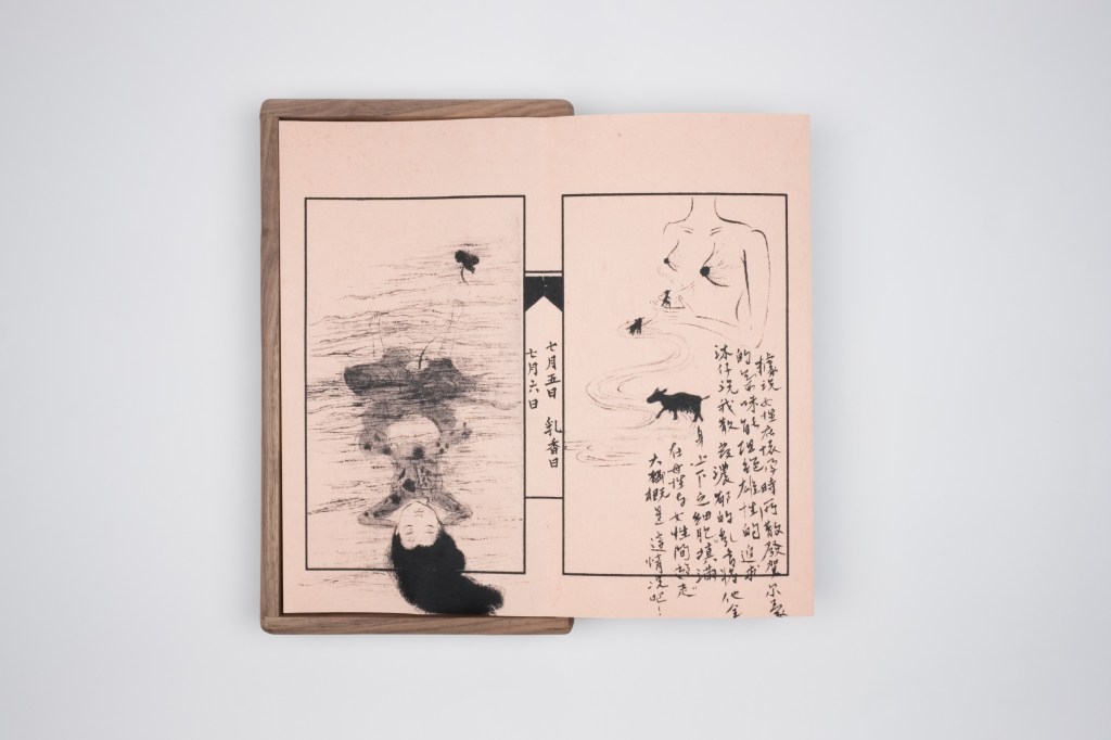 “MAMA LU – Alchemy” is a collection of writings about changes in the body during pregnancy, and the subconscious experiences throughout. With each chapter written to extend a part of the pregnant body, my writing doesn’t have a clear beginning or end, nor does it have an absolute, single purpose. Sometimes, it is a mere few words to describe the sensations of the body, at other times, it recounts the childhood fear I felt, witnessing a mother dog giving birth; then it becomes the imaginings of life beneath the flesh, nestled within. The texts and images in the artwork include reflections on transitioning from the figure of a girl to the figure of a mother and thoughts on a transforming body. Expressed through the medium of the artist’s book, the artist’s book is no longer seen as just a vessel to contain knowledge, nor a carrier to express the truth; it becomes a book with pages to leaf through, a book with temporality, parallel to the body.