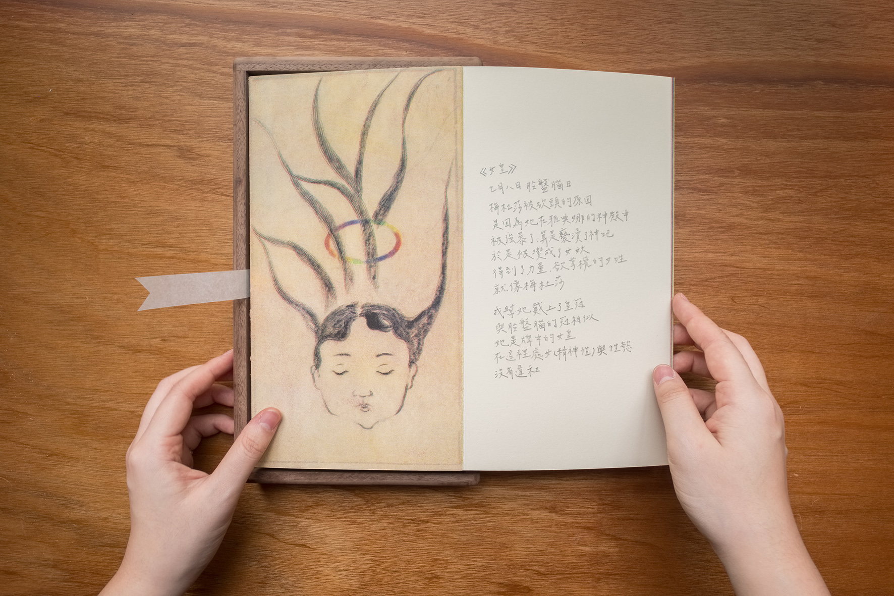 色鉛筆、PS版印刷、胡桃木盒