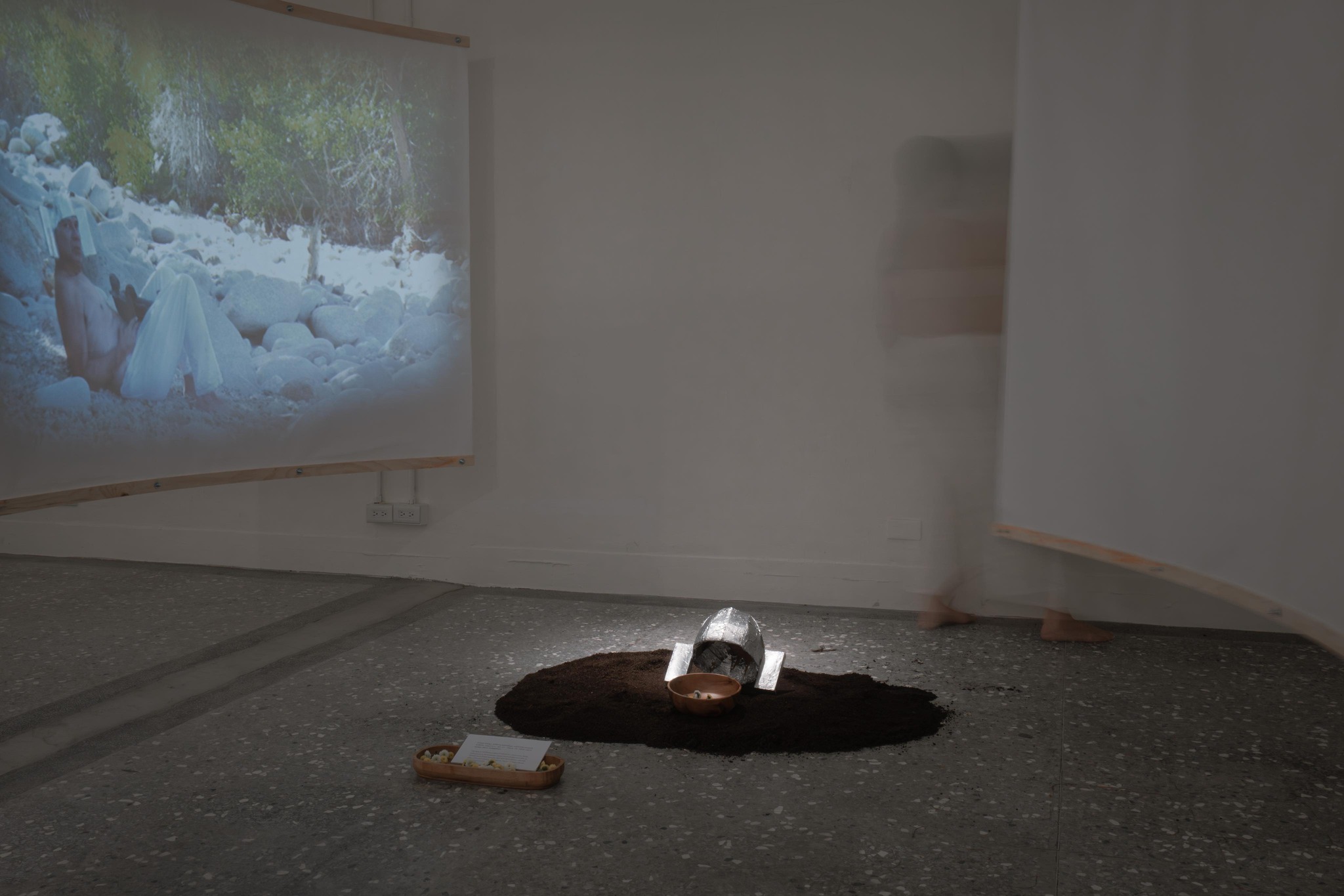 In his video artworks, the artist Jorge Rojas performs as Chac Mool, a character who acts as a medium for the gods, somewhere between the natural and the supernatural. Through their video performance, the artist reexamined the interrelation of one’s immigrant identity to the American land and invited Taiwanese performers to recreate the live performance of Chac Mool.