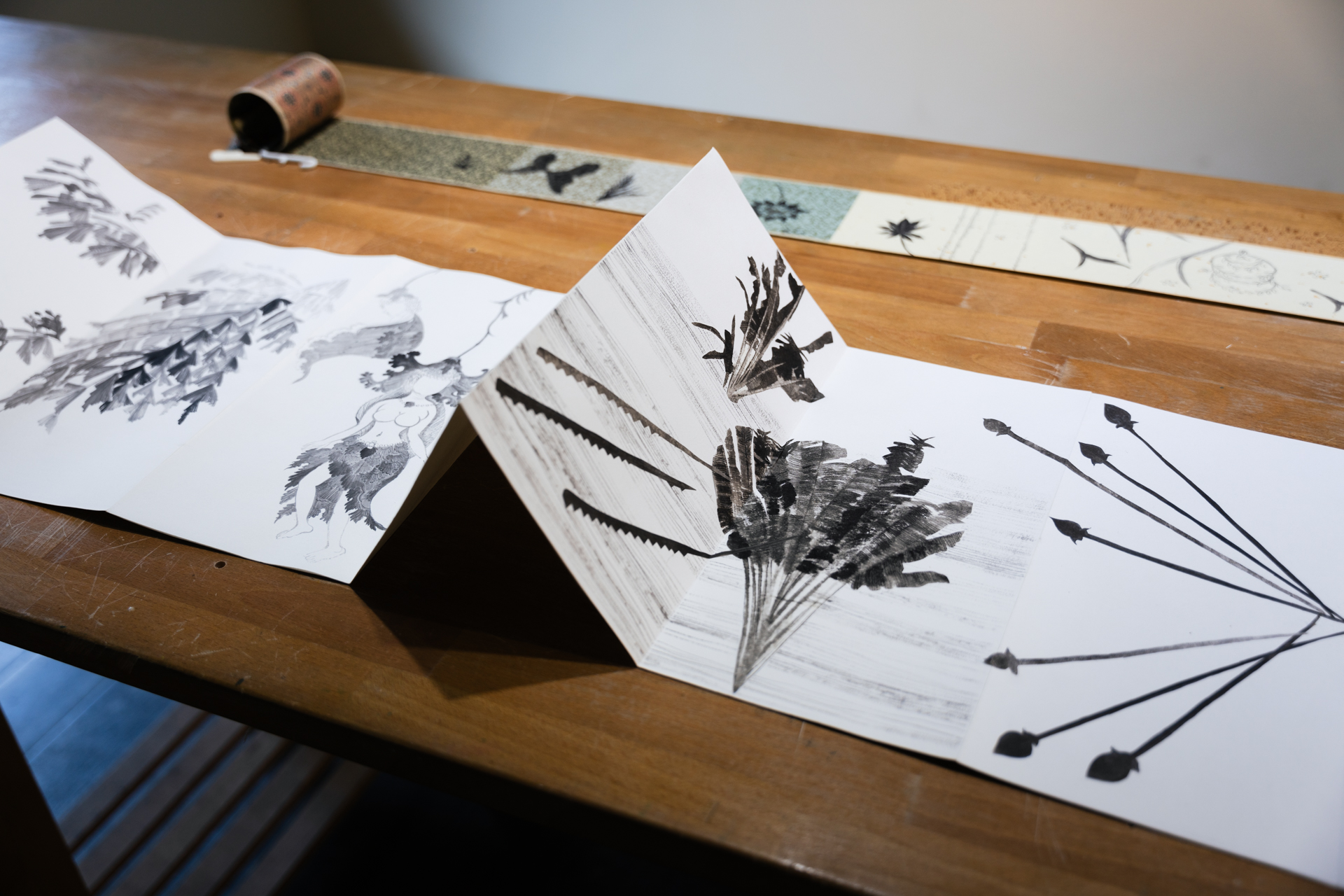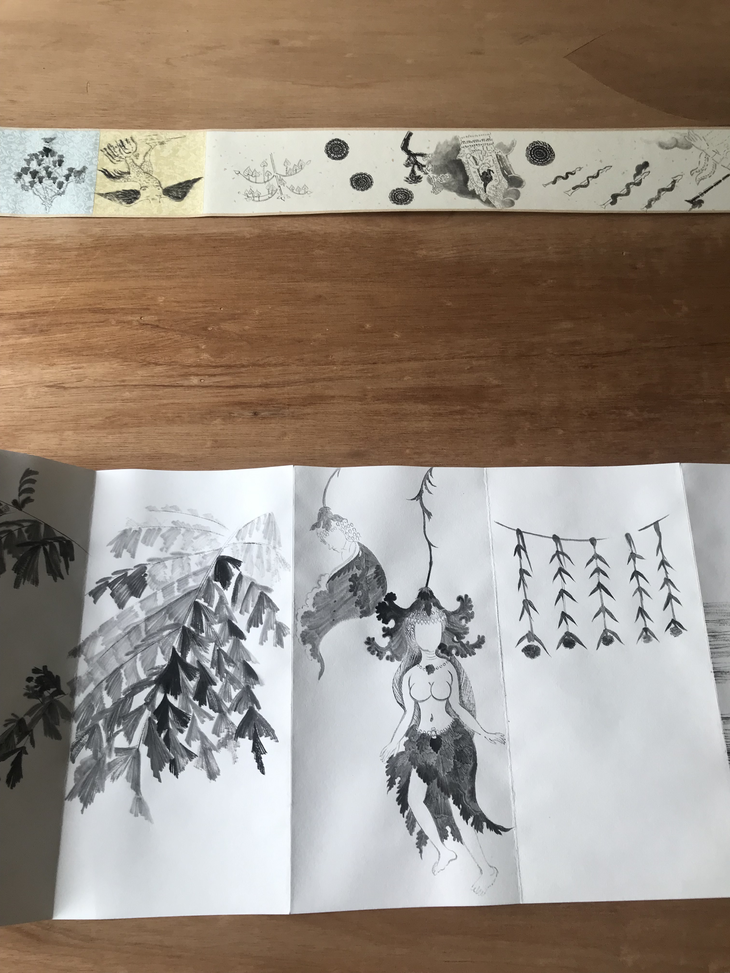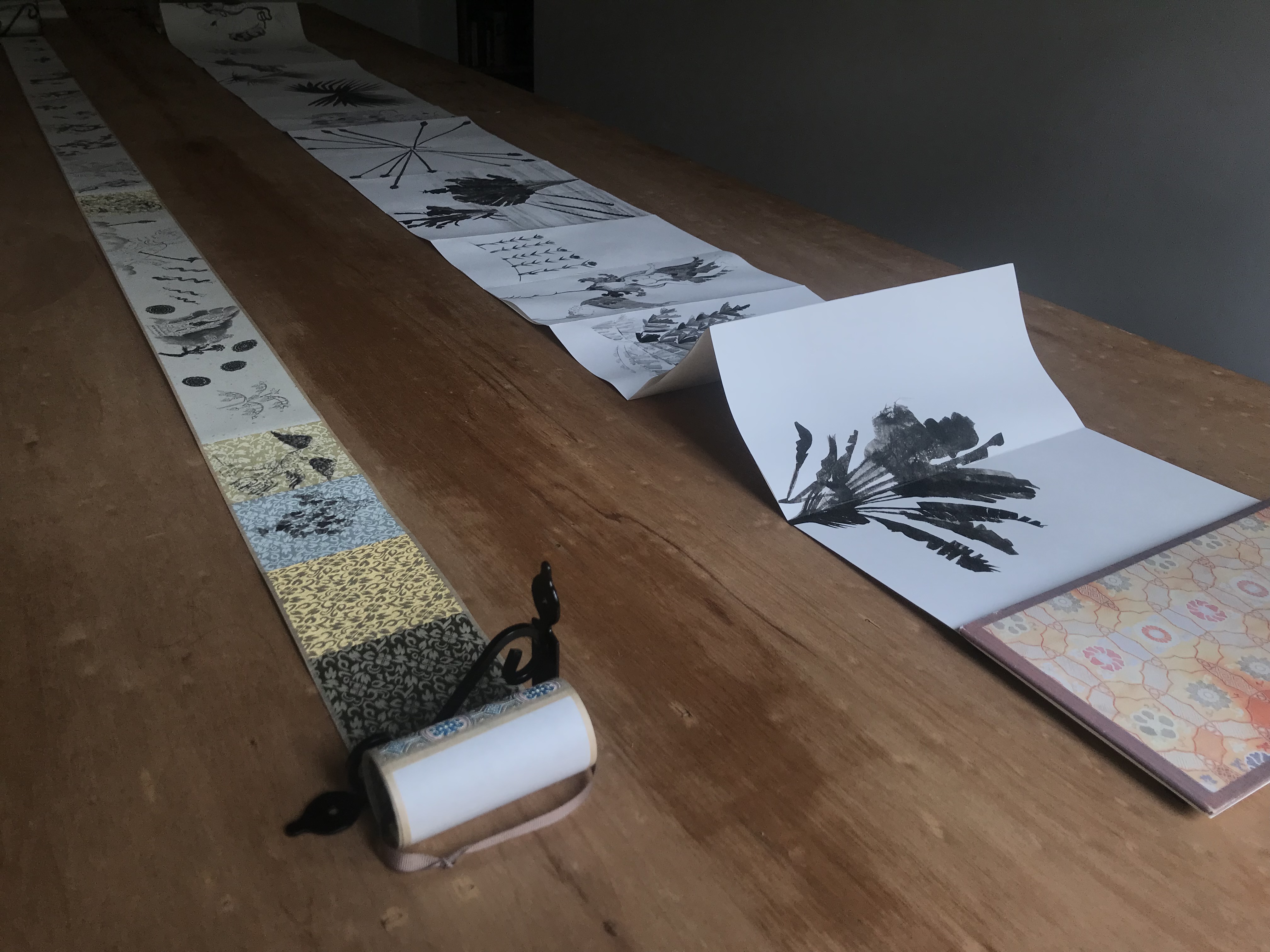 During my residency at Grey Projects, I translated Southeast Asian myths, cross-cultural figures of goddesses, as well as colonial fragments, images, plants, etc., and created artist’s books of ink albums, and handscrolls.